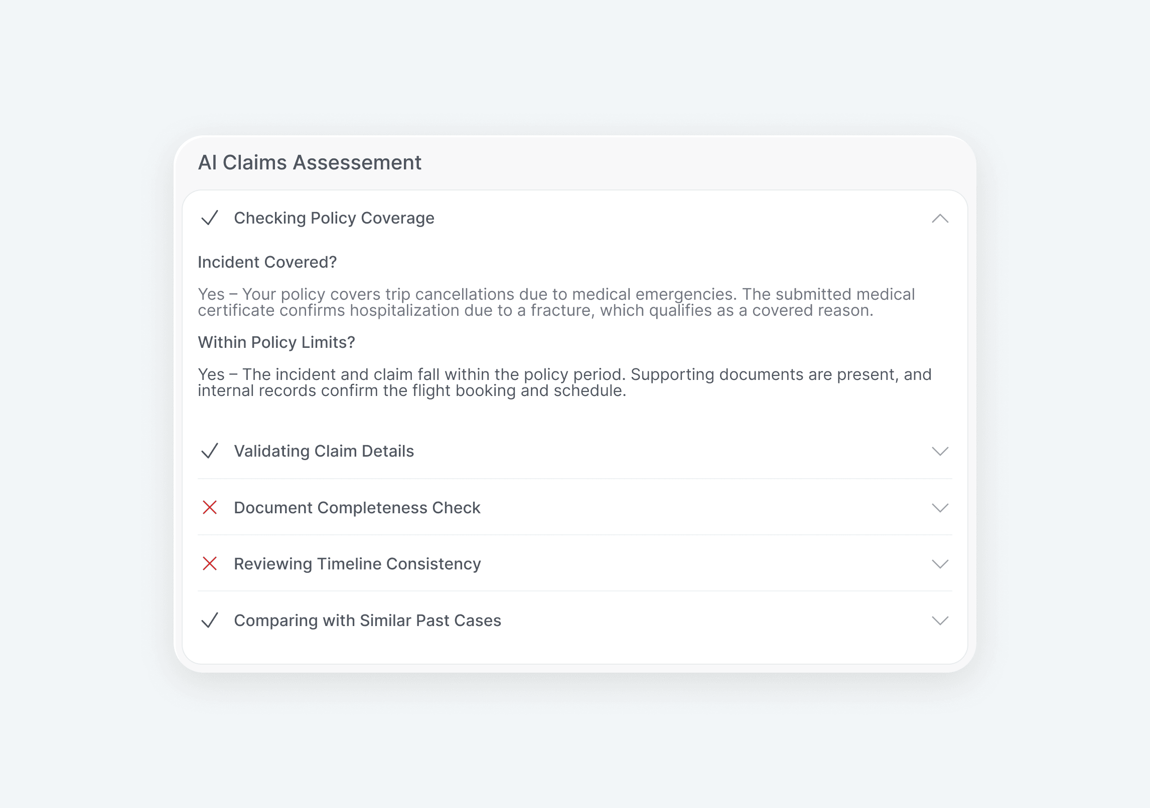 Automate coverage checks, document validation, and fraud detection so claims adjusters can focus on the cases that matter. MarvelX can handle the FNOL, assess every submission and updates your CMS automatically, delivering faster, more accurate decisions with full auditability and control.